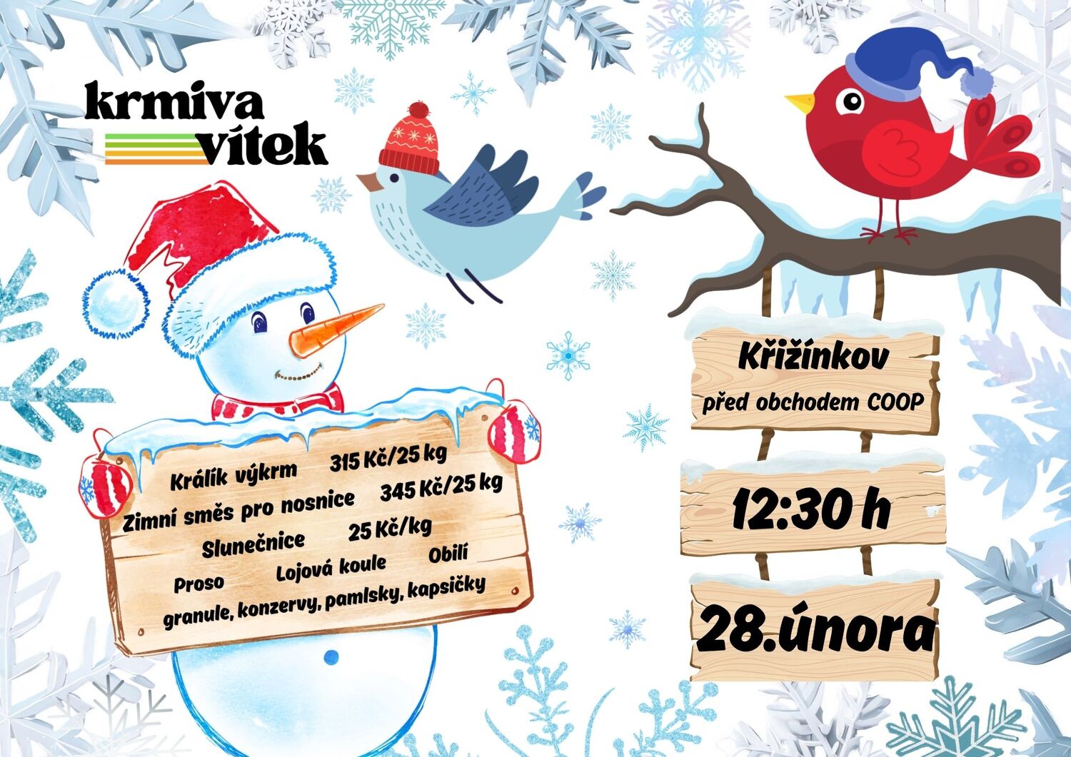 V sobotu 28.2.2026 proběhne prodej krmných směsí pro domácí a hospodářská zvířata.