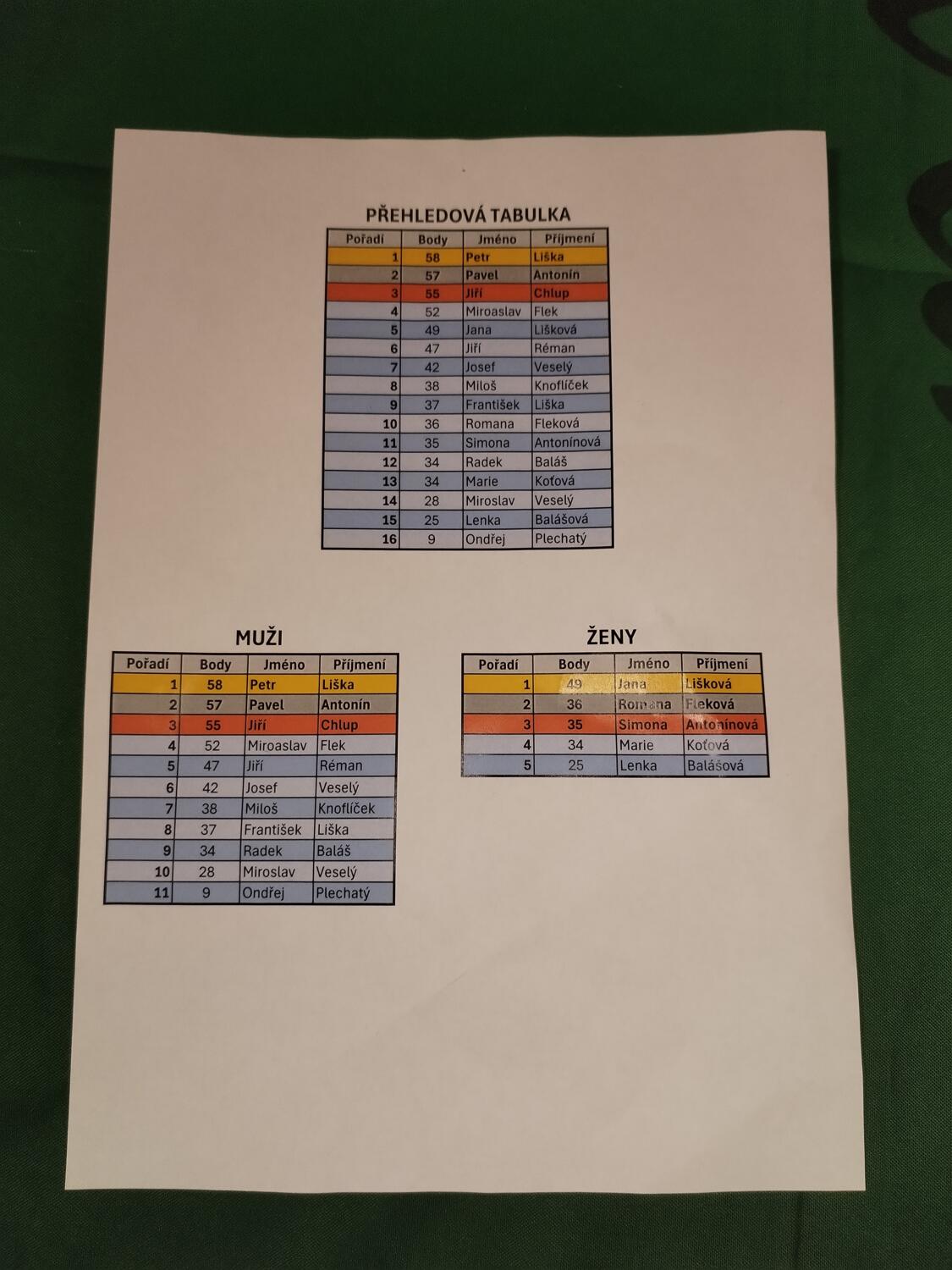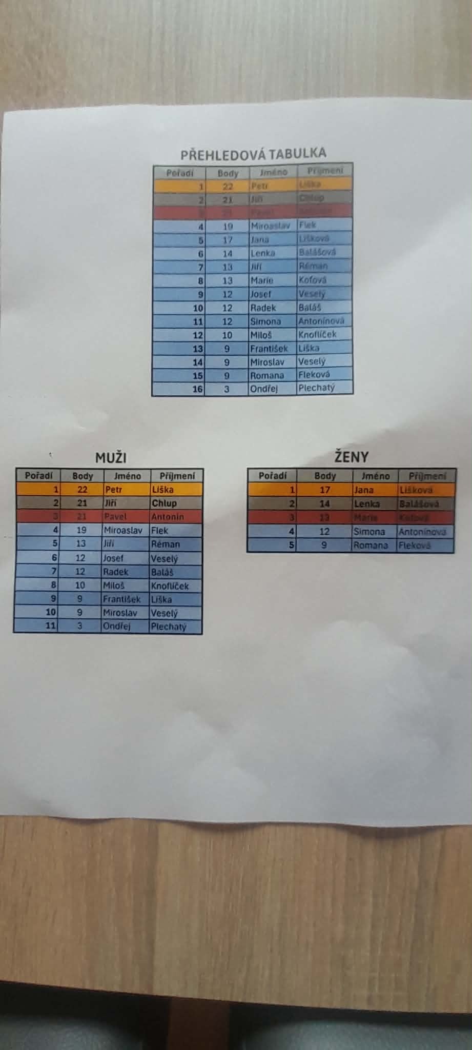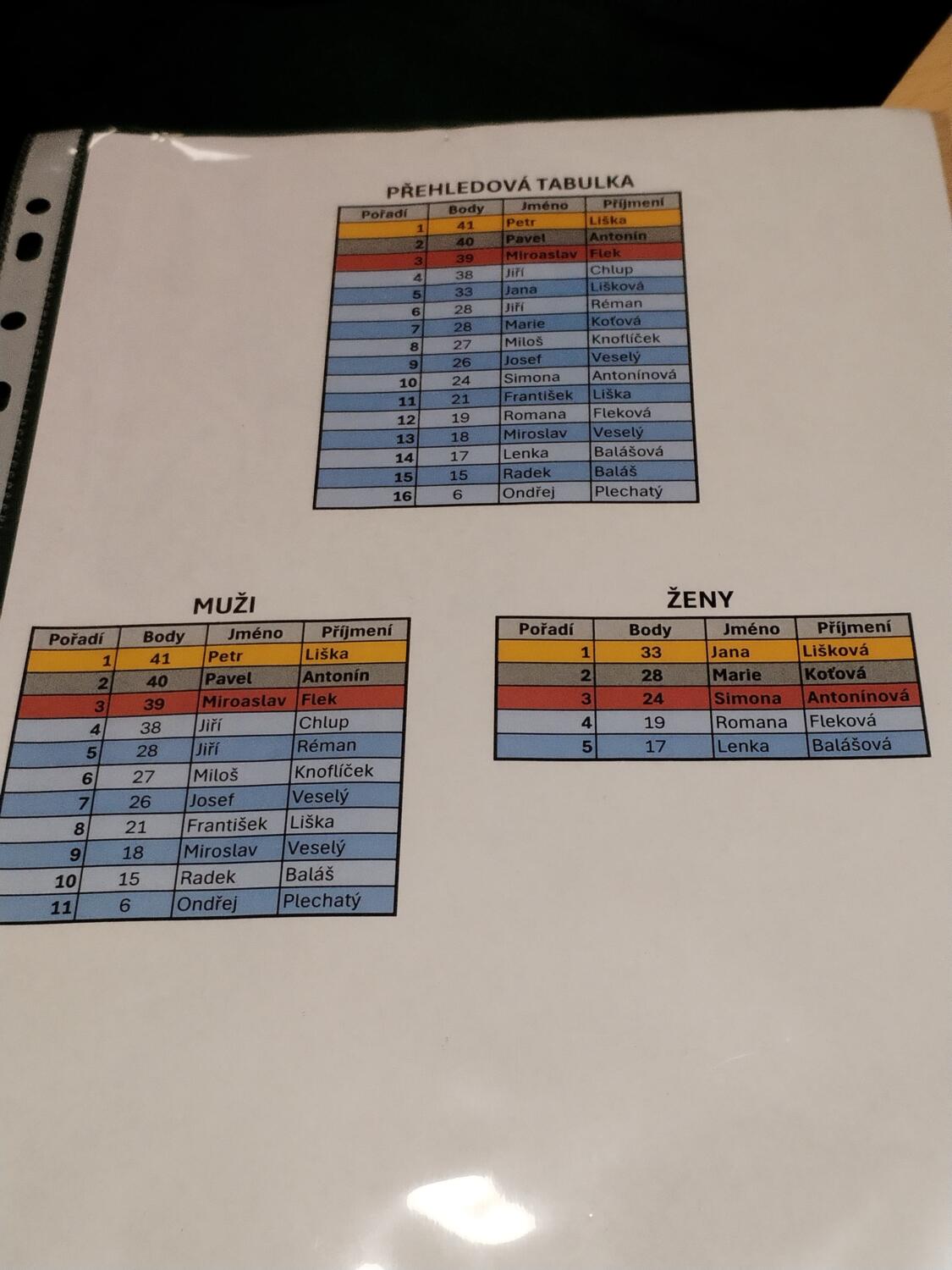 Postupné pořadí dle částí turnaje